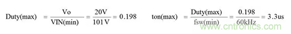 假設(shè)最大輸入電壓264VAC時(shí)的最小導(dǎo)通時(shí)間為1µs,則:
