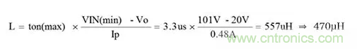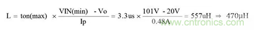 首先計(jì)算電感值。設(shè)VIN為101V。假設(shè)90VAC條件下,峰值電壓為1.41倍,余量為20%。