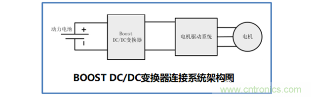 新能源汽車上使用的BOOST DC-DC變換器主要用于高壓系統的升級,將動力電池系統的電壓等級再行升高, 以匹配更高等級的電機驅動系統。BOOST DC/DC 變換器的系統結構圖下圖所示。