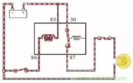 繼電器在汽車電路中的應用非常廣泛。如啟動系統(tǒng)電路、雨刮器電路、后窗加熱電路等。車輛啟動時需要大的啟動電流,如果使用點火開關直接控制大電流經過的點火開關,啟動觸點會出現(xiàn)觸點打火、燒蝕等現(xiàn)象,影響點火開關使用壽命甚至會造成線路燒蝕、起火等嚴重后果。使用繼電器以小電流控制大電流則不會出現(xiàn)以上問題。