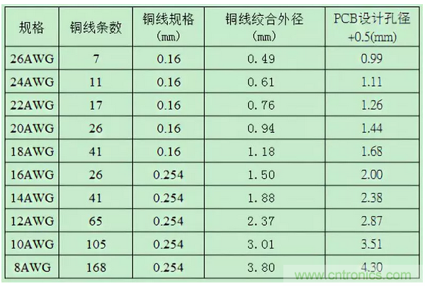 多根飛線直徑計(jì)算參考如下表格: