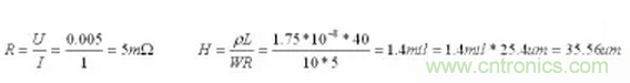 方法:在PCB板上找一條光滑且長的線條,測量其長度L,再測寬度W,再用DC源加1A電流在其兩端測得壓降U