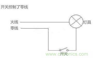 1、開關(guān)控制了零線,火線直接進(jìn)了燈具