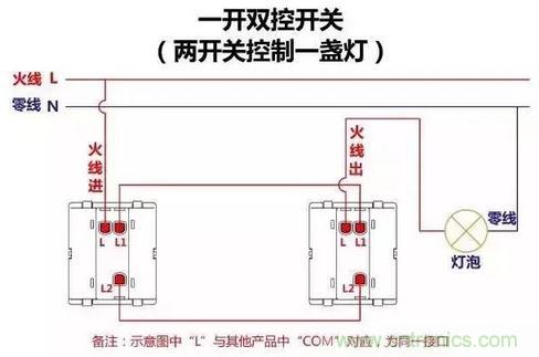 一開雙控(單聯(lián)雙控)接線圖