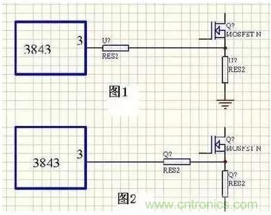 控制部分要注意:高阻抗弱信號電路連線要盡量短如取樣反饋環路,在處理時要盡量避免其受干擾、電流取樣信號電路,特別是電流控制型電路,處理不好易出現一些想不到的意外,其中有一些技巧,現以3843電路舉例見圖(1)圖一效果要好于圖二,圖二在滿載時用示波器觀測電流波形上明顯疊加尖刺,由于干擾限流點比設計值偏低,圖一則沒有這種現象、還有開關管驅動信號電路,開關管驅動電阻要靠近開關管,可提高開關管工作可靠性,這和功率MOSFET高直流阻抗電壓驅動特性有關。