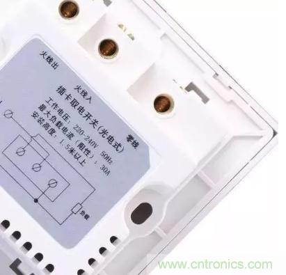 補充:插卡取電開關可以根據房間不同的負載要求,有30A、40A等。