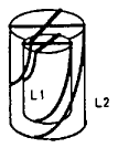 盡管采用較粗的螺旋臂可使四臂螺旋天線輸入端的電抗隨頻率的變化變得較慢,因而能在一定范圍內(nèi)改善頻帶特性,但這種改進(jìn)受到很大的限制,且付出的代價(jià)是增加了天線的重量和加工難度。為了能真正實(shí)現(xiàn)寬帶工作,我們以這種天線為基礎(chǔ)設(shè)計(jì)出的八臂螺旋天線如圖1所示。這種新型天線由兩付形狀相同,共軸放置,但臂長(zhǎng)不同的四臂螺旋天線組成。我們只對(duì)其中的一付螺旋天線饋電,另一付天線上的電流則通過(guò)電磁耦合得到。