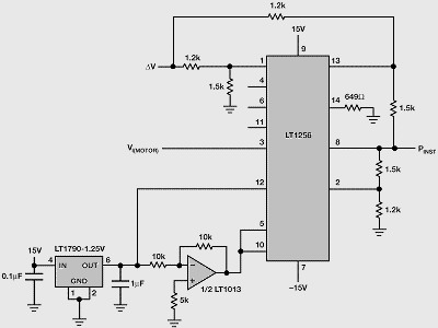 本文介紹的功率測量電路可以測量高頻PWM驅動電機或其它任何高頻功率測量產品中的功耗。對低頻產品,可用LTC1966或LTC1967替代LTC1968。