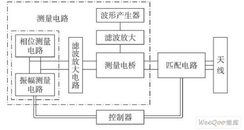 手工匹配采用的是阻抗分析儀或者網絡分析儀,網絡分析儀是用定向耦合器來測量天線電路的反射系數。但使用定向耦合器有幾個主要的缺點,例如功率損耗大和很難嵌入到IC芯片。故而本文在電路中不使用耦合器,從圖3看出,測量電路包含以下4部分。