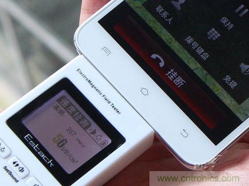 我們也進(jìn)行了相關(guān)的簡(jiǎn)單測(cè)試,采用Estack ES-305A型電子輻射檢測(cè)儀,第一階段將手機(jī)撥號(hào),使其為通話狀態(tài),但尚未接通,此刻來(lái)使用輻射測(cè)試儀測(cè)試手機(jī)周圍輻射,找到平均輻射值最大的地方。第二階段用手機(jī)撥號(hào),接通五秒后,利用輻射測(cè)試儀在手機(jī)四周檢測(cè),同樣是找到平均輻射值最大的地方。