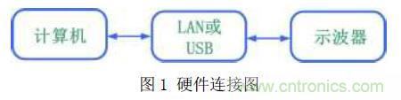 計(jì)算機(jī)通過(guò)LAN(網(wǎng)口)或者USB 接口與示波器建立連接來(lái)控制示波器。如圖1所示。