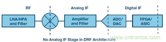 直接射頻架構是例外,其中數據轉換器直接對射頻信號采樣,因而沒有模擬中頻級,信號鏈僅由射頻級和數字中頻級構成。