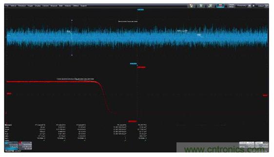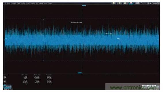 測量參數可以應用于圖2中的噪聲波形,以深入了解這種噪聲信號的特性。圖中顯示的參數有平均值、標準偏差和峰峰值。顯示器下方顯示了讀取的參數值。