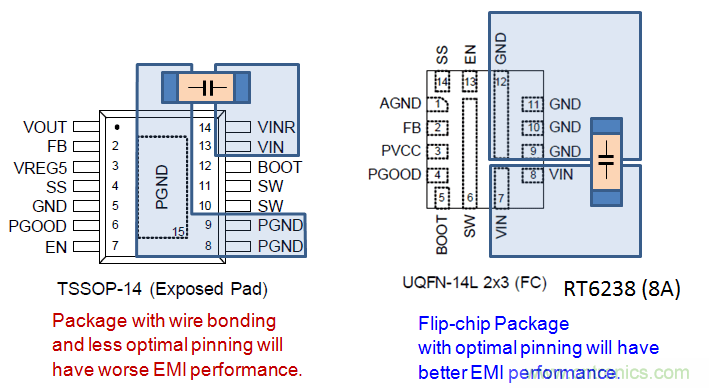 在噪聲敏感的應用中,最好是選擇小型封裝的、電感很低的晶圓倒裝芯片。