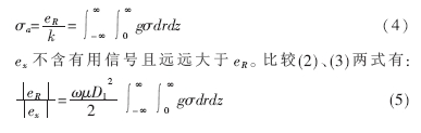 式中,ω為發(fā)射電流的頻率。由式(2)可以看出,ex是一個(gè)落后于發(fā)射電流π/2且與探頭周?chē)橘|(zhì)導(dǎo)電率無(wú)關(guān)的電勢(shì)信號(hào)。在系統(tǒng)的接收信號(hào)中,它表現(xiàn)為一個(gè)幅值較大的背景噪音。