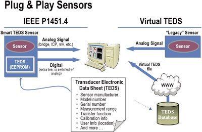 IEEE1451.3啟動處在多分支網(wǎng)絡(luò)中的傳感器的運行;于2003年通過的IEEE P1451.4規(guī)定與數(shù)字傳感器相關(guān)的數(shù)據(jù)(像傳感器的類別、型號、操作參數(shù)以及位置等)必須能夠以電子數(shù)據(jù)表的格式從整合在傳感器中的EEPROM(電可擦除只讀存儲器)存儲器中讀取,這種數(shù)據(jù)表被稱為變換器電子數(shù)據(jù)表(TEDS-Transducer Electronic Data Sheet)。IEEE P1451.4標準極大地簡化了傳感器的布線以及更換故障傳感器的問題。它同時也免除了傳感器在設(shè)置和校準方面的人工干預(yù),這種干預(yù)即費時又易出錯。這樣傳感器就成了即插即用的裝置。在國家儀器網(wǎng)站(National Instruments’ web site)中有一個有效TEDS的數(shù)據(jù)庫,它包括了可以在IEEE P1451網(wǎng)絡(luò)中使用的各種老式的或沒有EEPROM的傳感器的專門資料。IEEE 1451.5標準仍在審核階段,它規(guī)定的是將TEDS連接到無線網(wǎng)絡(luò)中的必要條件,如與802.11、藍牙或ZigBee等的連接。最近又提出了IEEE 1451.6標準議案,它定義TEDS和CAN總線的接口。