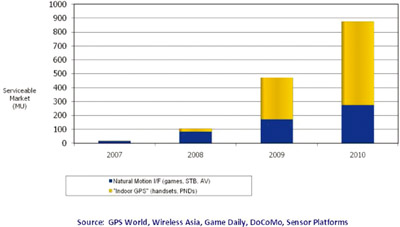 市場調(diào)研機構(gòu)iSuppli認為,移動傳感器(motion sensors)將代替?zhèn)鹘y(tǒng)的傳感器成為MEMS市場的主要推動力,至少在2012年之前會是這樣。尤其是加速計(accelerometer),它在便攜式消費電器中將被用來啟動一系列高級界面功能。傳感器在消費電器中的應(yīng)用正在迅速飆升,像用于游戲、筆記本電腦和數(shù)碼相機中的移動傳感器就是實例。雖然以傳感器為基礎(chǔ)的微型機電系統(tǒng)(MEMS-microelectromechanical systems)的價格已經(jīng)在迅速下降,它們還是太昂貴而不能被用在一些對價格敏感的消費產(chǎn)品中。