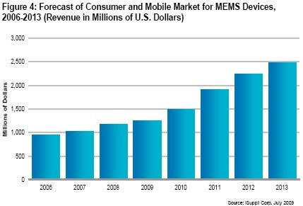 • 2009年用于消費電子與無線產(chǎn)品的微電機系統(tǒng)逆勢增長