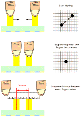 手指間距:手指間距定義為,當觸摸屏控制器測量兩只手指的位置時,兩只手指中心點之間在屏幕上的最短距離。手指間距測量方法(圖2),是將兩個模擬或機械手指置于面板上,然后逐漸拉近兩只手指的距離,直到系統測到兩只手指為一只手指為止。有些觸摸屏供貨商的手指間距是指邊緣至邊緣的距離,有些則是中心點之間的距離。10毫米機械手指的10毫米手指間距,表明有多只手指觸碰到屏幕,或是手指之間的距離為10毫米,實際狀況取決于觸控控制器的規格定義。如果沒有良好的手指間距,就無法設計出多點觸控解決方案。對于仿真鍵盤而言,手指間距尤其重要,因為一般在使用仿真鍵盤時,手指在屏幕上的間距通常很短。