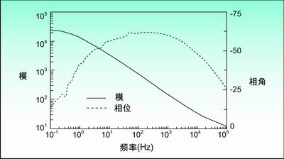 盡管奈奎斯曲線很常用,但是它不能給出頻率信息,所以對于任何特定阻抗,都不可能知道采用的頻率值是多少。因此,奈奎斯曲線通常要采用其它曲線來補充。另外一種常用的表示方法就是波特(Bode)圖。在波特圖中,x軸表示頻率的對數,阻抗的幅度絕對值|Z|和相移都用y軸表示。因此波特圖同時表示了阻抗與頻率和相移與頻率的關系。通常將奈奎斯曲線和波特圖一起使用來分析傳感器元件的傳遞函數。