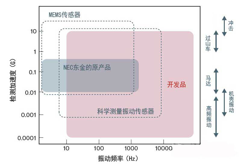 圖1:NEC東金開發的振動傳感器的檢測范圍