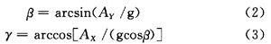 當(dāng)加速度計(jì)被定向,那么它的X和Y軸就和地球表面平行可用來(lái)作為具有翻滾和傾斜兩個(gè)軸的雙軸斜度傳感器,被測(cè)物體的俯仰角記為γ和橫滾角β。將磁阻傳感器的3個(gè)敏感軸沿載體的3個(gè)坐標(biāo)軸安裝,分別測(cè)量地磁場(chǎng)磁感應(yīng)強(qiáng)度H在載體坐標(biāo)系3個(gè)坐標(biāo)上的投影分量(HX,HY,HZ),然后利用俯仰角和橫滾角進(jìn)行姿態(tài)解算就可以得到電子羅盤的方位角。