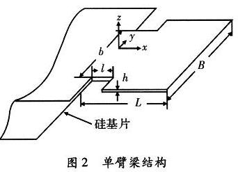 Aasys是一個可在微機上使用的綜合性有限元軟件,是微機電系統設計中廣泛使用的有限元分析軟件。通過有限元的分析計算可以預測懸臂梁上引力分布、固有頻率、可測最大加速度等,進而指導梁結構參數的選取。經過對梁結構有限元的計算分析選取單臂梁、雙臂梁結構參數,如表1所示。