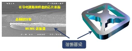 圖1:MEMS諧振器四邊的梁前后振動產生時鐘頻率