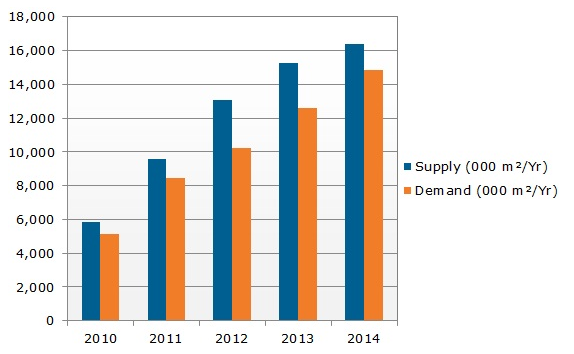 2010-2014年觸控感應器的供需情況