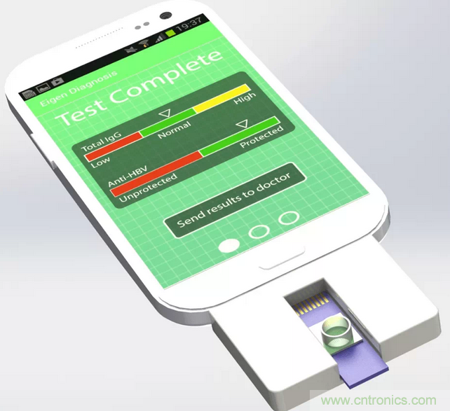 igen Lifescience團(tuán)隊(duì)由斯坦福大學(xué)4名學(xué)生和2名顧問組成,利用一年時間研發(fā)出一款微型設(shè)備,在不到10分鐘的時間內(nèi)就能測試出患者是否患有乙型肝炎。該設(shè)備主要利用智能手機(jī)的微處理器,成本低廉,易于攜帶。這款設(shè)備主要針對醫(yī)療資源緊張的發(fā)展中國家而設(shè)計,能夠快速確定需要優(yōu)先治療的患者。將來,該設(shè)備的檢測范圍可能得到進(jìn)一步拓展,如檢測HIV或心臟病等。