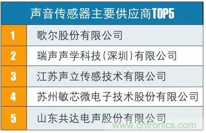 目前,傳感器與MEMS(微機電系統)的結合,已成為當前傳感器領域關注的新趨勢,這一點在聲音傳感器領域也不例外,其中歌爾股份就是全球MEMS麥克風的龍頭企業,歌爾股份成立于2001年,專注聲學科技,市場占有率居世界同行業之首,在國際排名第三。