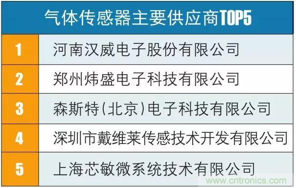 國內方面,主要的氣體傳感器企業有煒盛科技、河南漢威、森斯特、深圳戴維萊和上海芯敏等。其中,煒盛科技是目前國內唯一能生產半導體類、催化燃燒類、電化學類和紅外光學類等四大類氣體傳感器的企業。為國內氣體傳感器絕對龍頭,占據60-70%銷售量。檢測氣體種類覆蓋絕大多數可燃氣體和多數毒性氣體,廣泛應用于工業、礦業、等領域。(記者:譚倫)