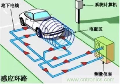 目前,道路檢測(cè)交通流狀態(tài)用的最多的傳感器件是環(huán)形線(xiàn)圈,它可以檢測(cè)交通量、車(chē)速、占有率、車(chē)頭時(shí)距、車(chē)長(zhǎng)、長(zhǎng)車(chē)比和車(chē)輛存在等多個(gè)項(xiàng)目。環(huán)形線(xiàn)圈檢測(cè)原理如圖所示。線(xiàn)圈由專(zhuān)用電纜繞幾匝(一般為4匝)及其饋線(xiàn)構(gòu)成,它通過(guò)一個(gè)變壓器接到被恒流源支持的調(diào)諧回路,有源環(huán)形線(xiàn)圈構(gòu)成LC調(diào)諧回路的電感部分,并在線(xiàn)圈周?chē)目臻g產(chǎn)生電磁場(chǎng)。當(dāng)含有鐵金屬的車(chē)體進(jìn)入線(xiàn)圈磁場(chǎng)范圍,車(chē)輛鐵構(gòu)件內(nèi)產(chǎn)生自成閉回路的感應(yīng)電渦流,此渦流又產(chǎn)生與原有磁場(chǎng)方向相反的新磁場(chǎng),導(dǎo)致線(xiàn)圈的總電感變小,引起調(diào)諧頻率偏離原有數(shù)值,從而發(fā)出車(chē)輛通過(guò)或存在的信號(hào)。