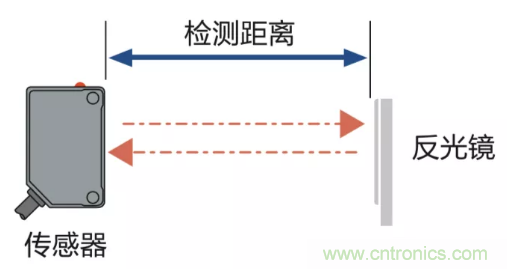 鏡面發(fā)射型光電傳感器:傳感器和反射鏡之間的距離