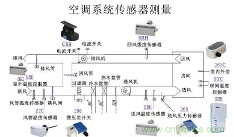 空調(diào)送風(fēng)系統(tǒng)傳感器應(yīng)用原理圖例和熱交換系統(tǒng)傳感測(cè)量原理圖