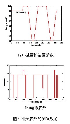 根據PCM各種工況下的極限環境,確定了溫度、濕度、電源電壓等重要參數,建立了一套周期為6小時的測試規范,具體如圖3所示,并通過了利用DSPACE快速開發平臺和NI虛擬儀器平臺建立的耐久性測試實驗平臺的檢驗。